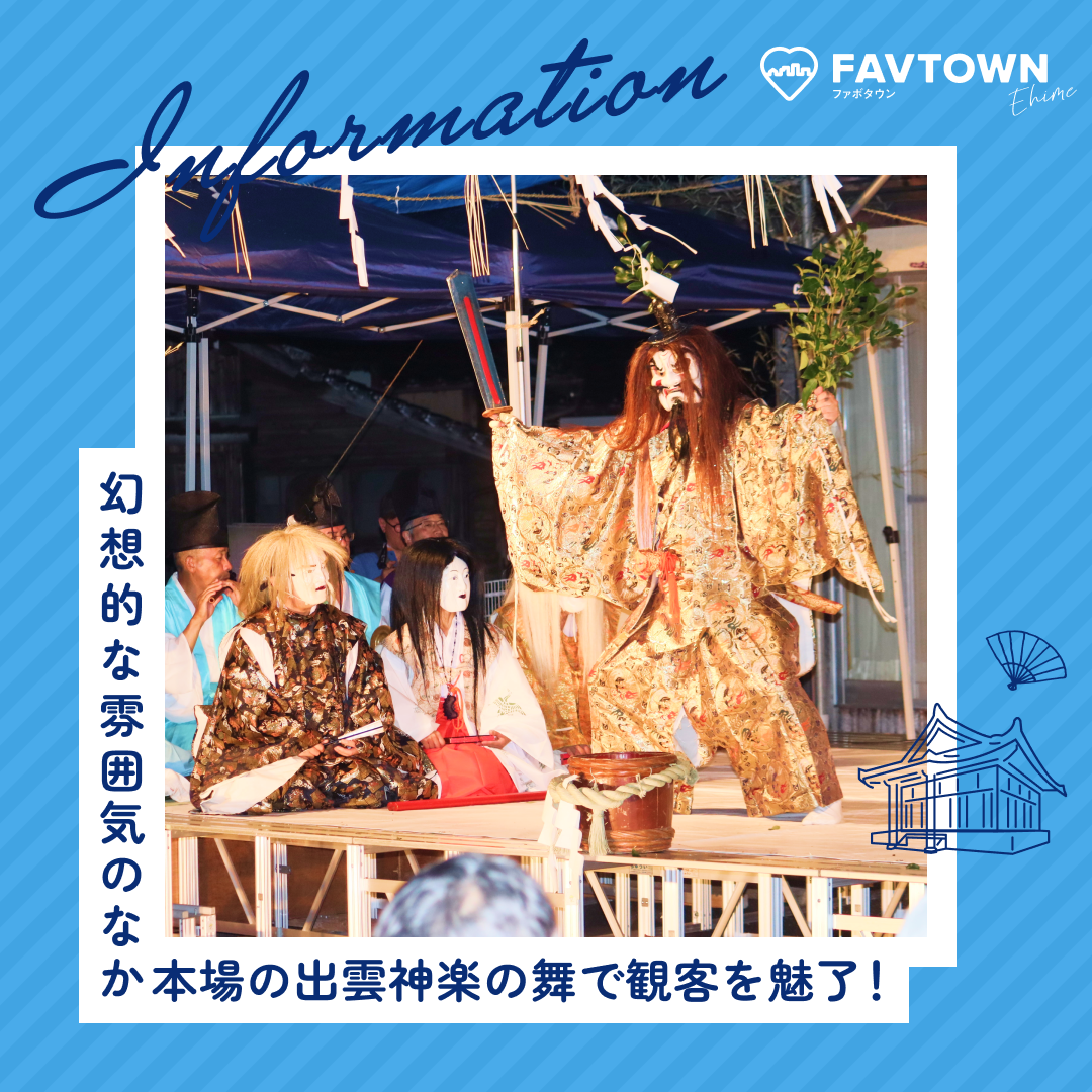 今年度は、地元の富母里神楽保存会のほか、特別公演として島根県出雲市より万九千社立虫神社神楽保存会が出演! |