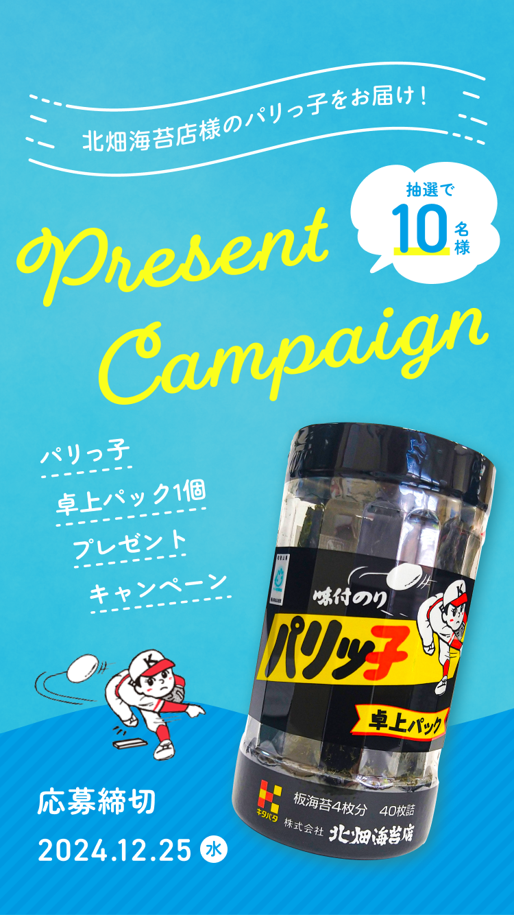 キタバタパリッ子卓上パック10切40枚を抽選で10名様にプレゼント。