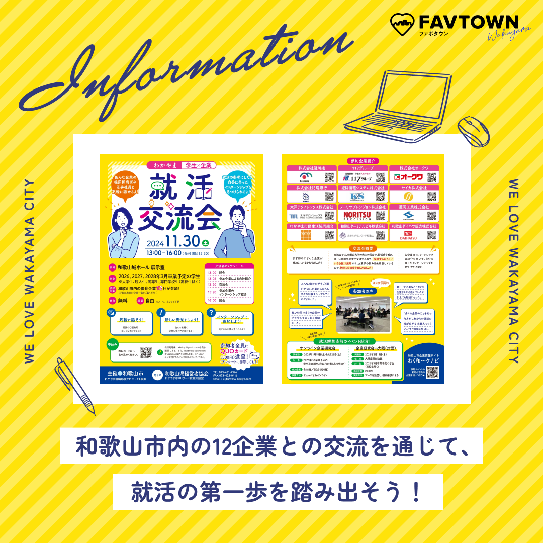 【11月15日配信メルマガ】就活の第一歩に!「わかやま学生×企業就活交流会」が開催されます![PR]